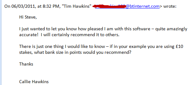 Return on Investment, Win 104% and place 97% after 5% CommissionWhy are some missing? We have been working on this software and some of the results have been lost.