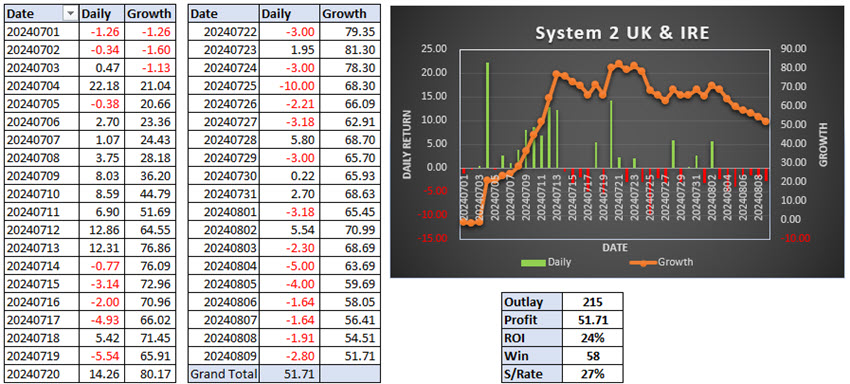Return on Investment, Win 104% and place 97% after 5% CommissionWhy are some missing? We have been working on this software and some of the results have been lost.