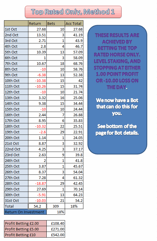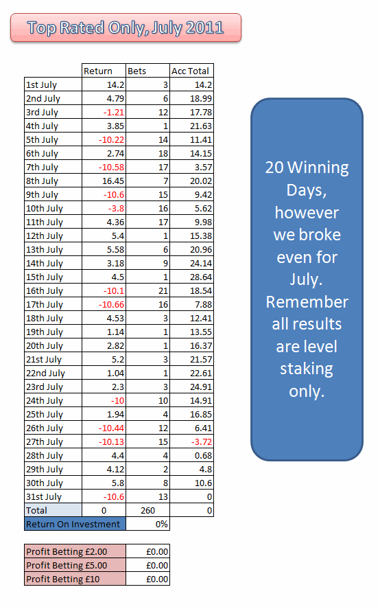 Betting Top Rated Only returns are at 420 points for the 6 Months,June, July,August,Sept,Oct and Nov 2011.